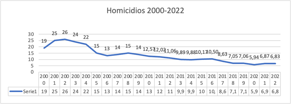 Ilustración 1: Evolución de tasa de homicidio 2000-2022